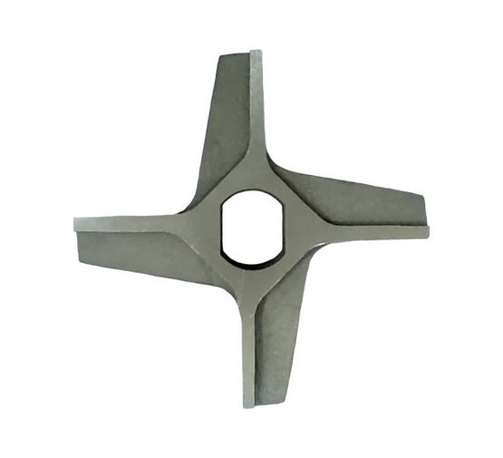 Нож волчка ПОМЗ D125 без бурта (25х20) крестовидный (двухсторонний) является частью режущего комплекта волчка-мясорубки, устанавливается после приёмной решётки и между промежуточной и выходной решёткой.