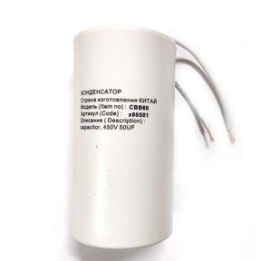 > Конденсатор для LG, Samsung, Ariston, СВВ60 50мкФ, с проводом, 450V, х60501
