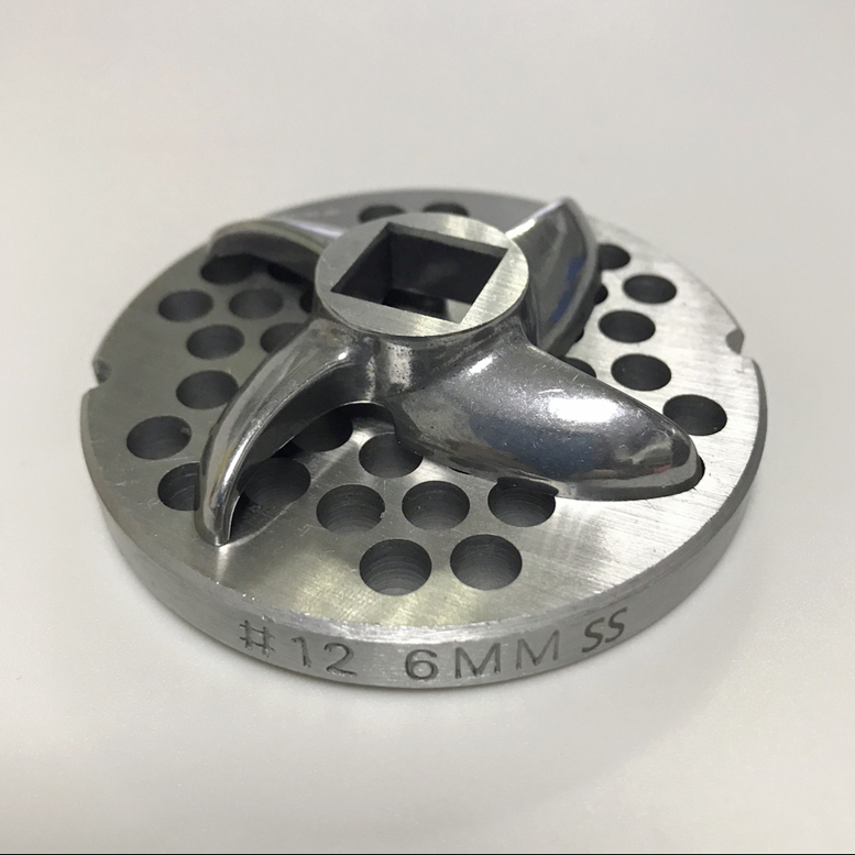 Решётка: диаметр - 69mm, ячейка 6mm, толщина 9mm, центральное отверстие 10mm | Нож: посадочное место 12x12mm | Саблевидные лопасти | Под решётку D-69mm | Нержавеющая сталь