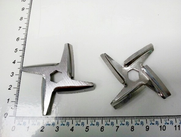 Обратите внимание! При ухудшении качества резки, замена одного крестообразного ножа не сильно улучшает качество выдаваемого продукта. Это обусловленно тем, что решётка так же является ножом (перфорированным), в ней так же заваливаются углы и нарушается плоскость в результате трения крестообразного ножа.