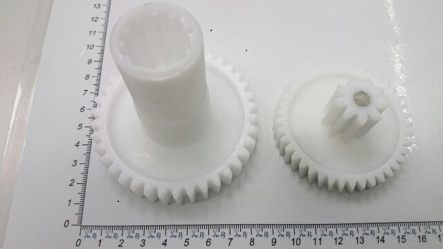Ведомая и средняя шестерни мясорубки Модели: GORENJE | ГОРЕНЬЕ MG2000S. РАЗМЕРЫ: 1-Диаметр 66/22мм, зуб 41/9шт, косой/прямой. 2-Диаметр 80/30мм, зуб 38/12шт, прямой/прямой